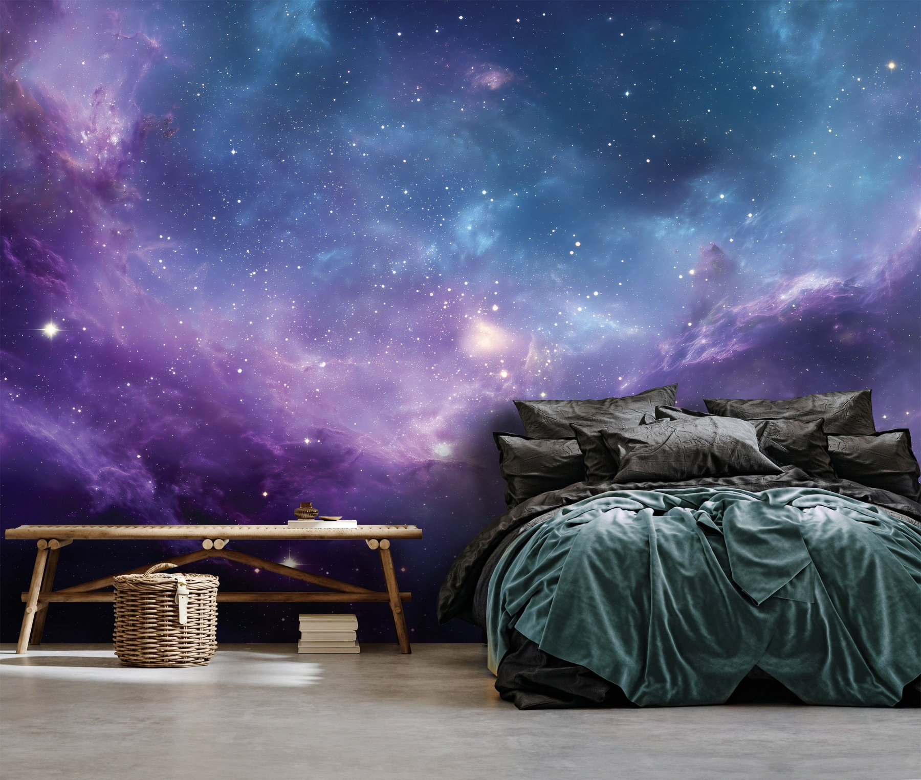 Фототапет Космическа мъглявина – галактически стил представя впечатляваща панорама от безкрайното космическо пространство. Дълбоките нюанси на синьо, лилаво и виолетово се преплитат в сияеща мъглявина, изпълнена със стотици блестящи звезди. Меките светлинни облаци и галактически структури създават усещане за необятност и дълбочина, което визуално разширява пространството и придава модерна и мистична атмосфера на интериора. Фототапет Космическа мъглявина – галактически стил е отличен избор за младежка стая, гейминг пространство, модерен офис или съвременен хол. Този космически дизайн превръща стената в прозорец към безкрайната вселена и създава впечатляващ акцент в интериора. |